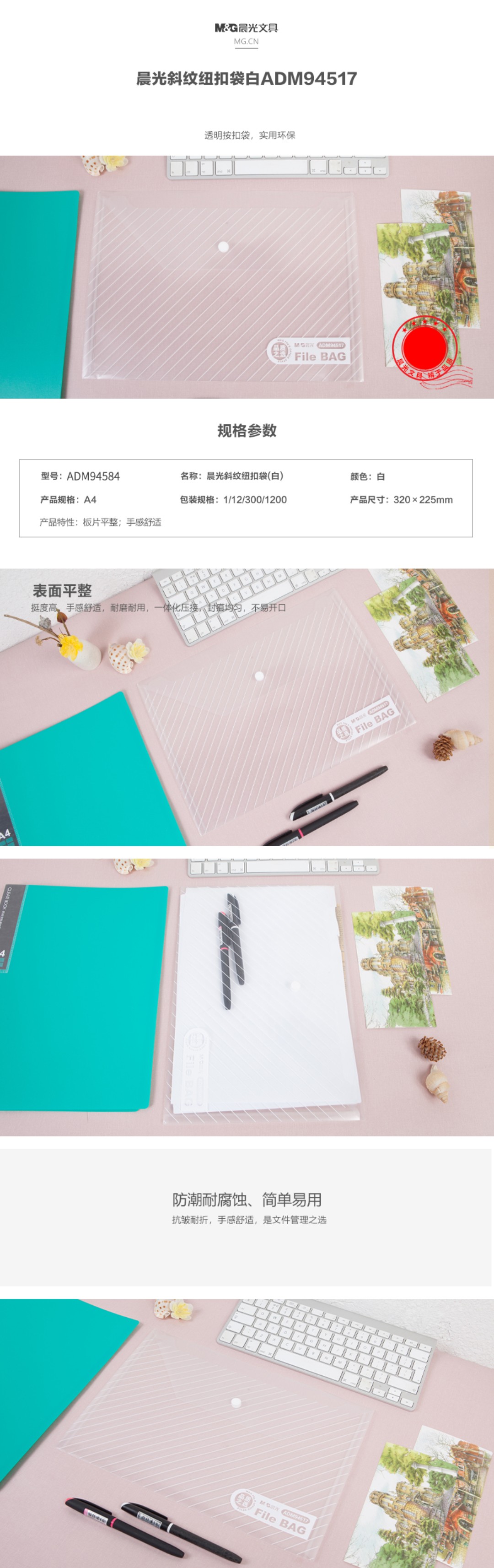 斜紋紐扣袋(白)